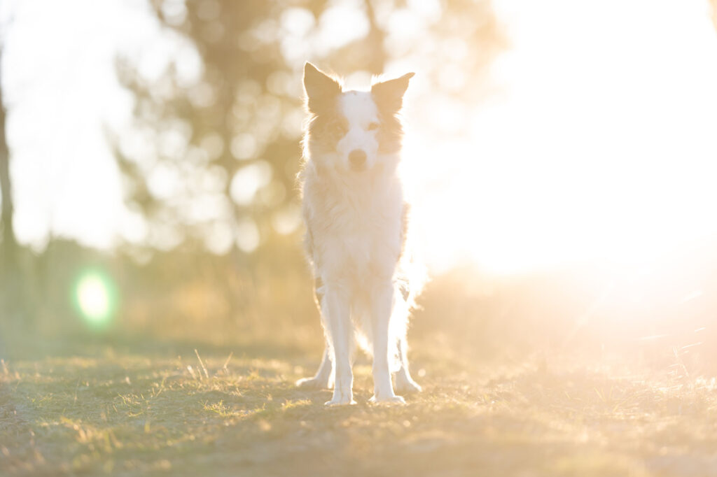 Ändere deine Position oder die deines Hundes, damit das Licht nicht direkt von hinten knallt. Oft reicht schon ein kleiner Schwenk, sodass die Sonne leicht von der Seite kommt.