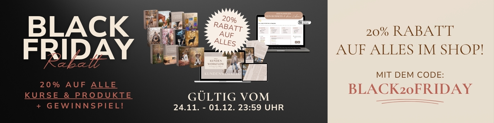 In meinem Shop findest du Videokurse und andere Produkte wie ein Notion Template, Photoshop Aktionen oder Ebook für Fotografen und Fotografinnen. Ganz egal ob die Tierfotografie dein Hobby ist oder ob du ein Business hast oder aufbaust. Hier findet jede:r etwas passendes!